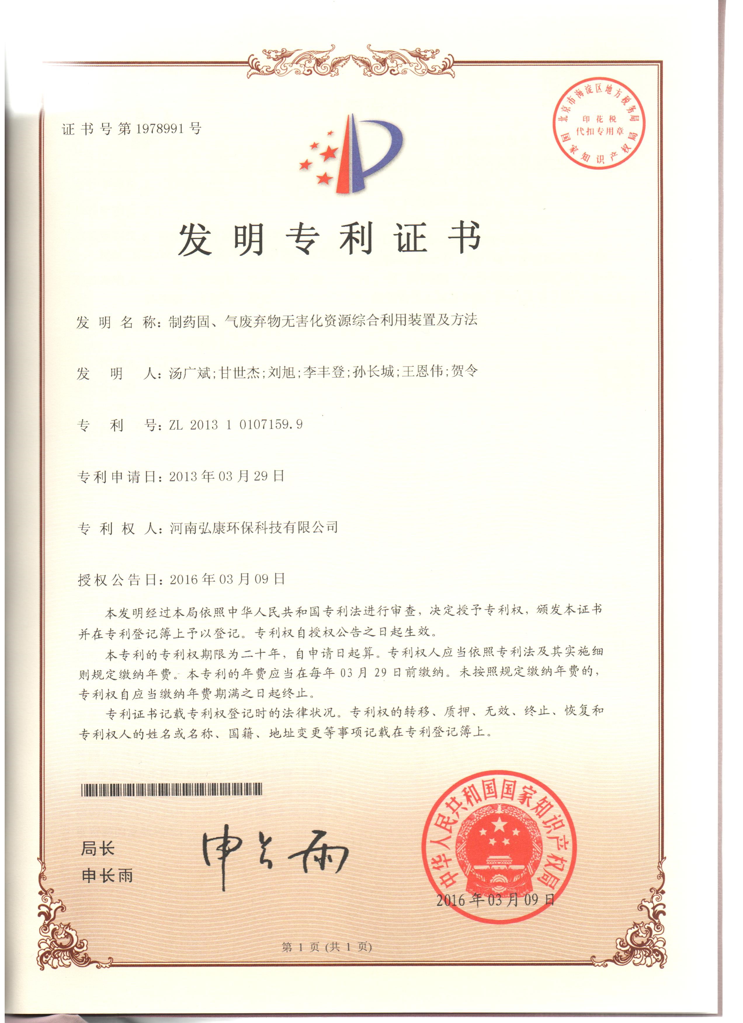 • 發(fā)明專利證書