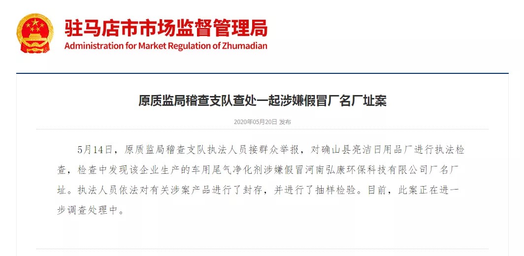 2020/05/25駐馬店市市場(chǎng)監(jiān)督管理局打假出重拳…