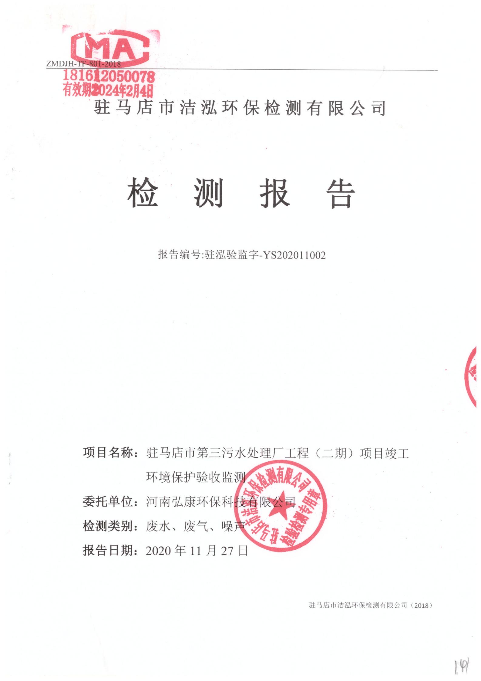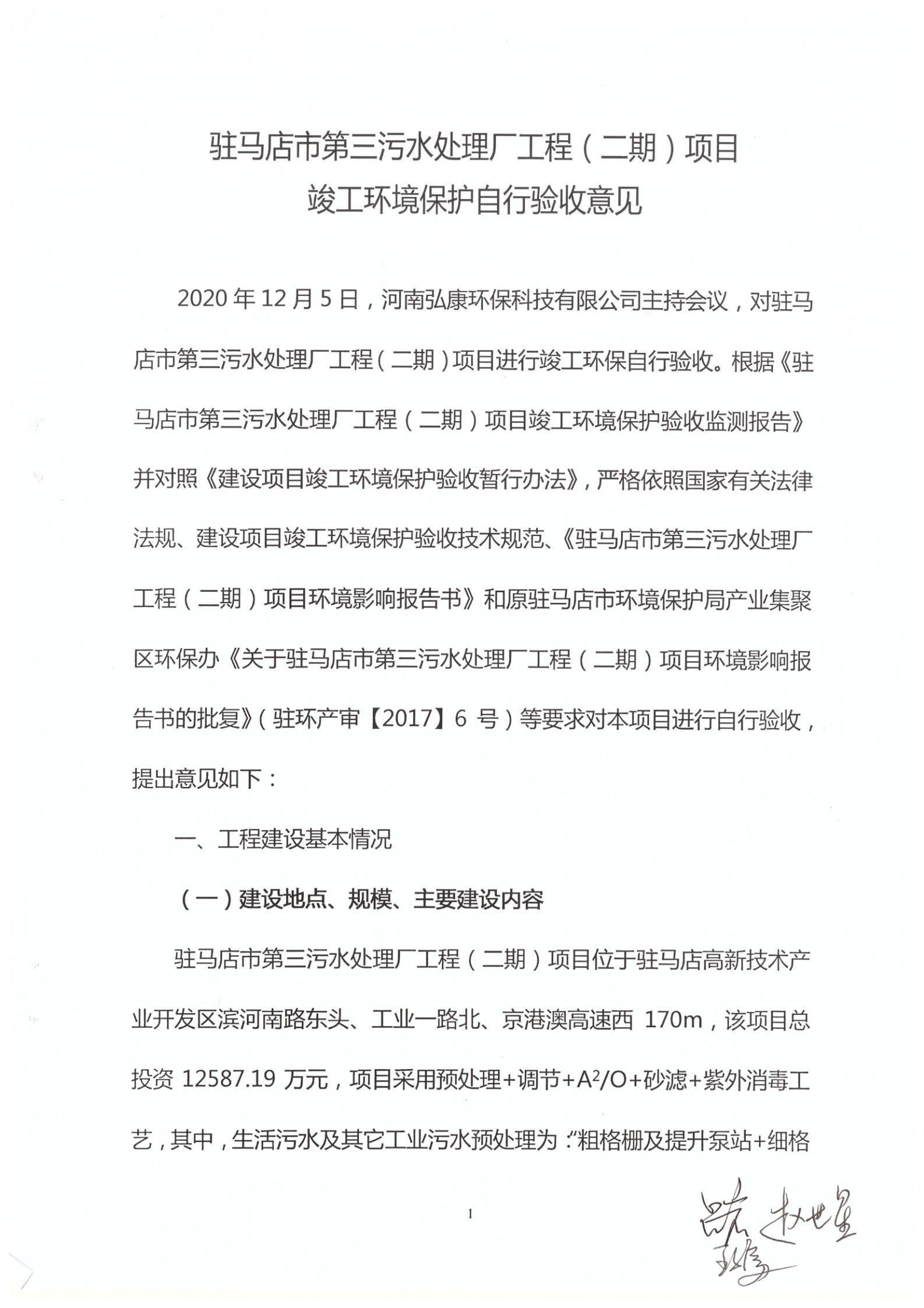 河南弘康環(huán)??萍加邢薰抉v馬店市第三污水處理廠工程(二期)項(xiàng)目竣工環(huán)境保護(hù)驗(yàn)收?qǐng)?bào)告公示